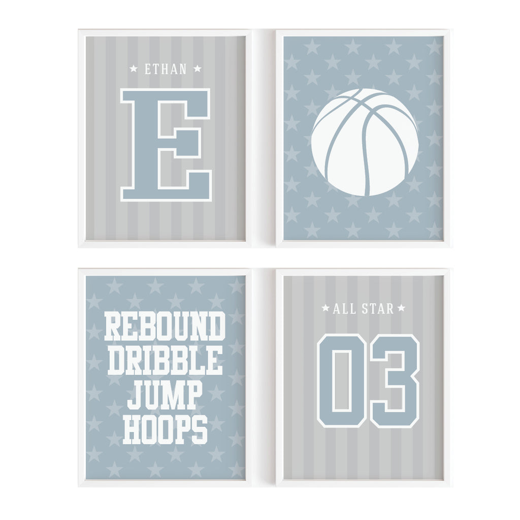 Personalized Basketball Nursery Wall Art - Boys Sports Room Decor (4-Pack)