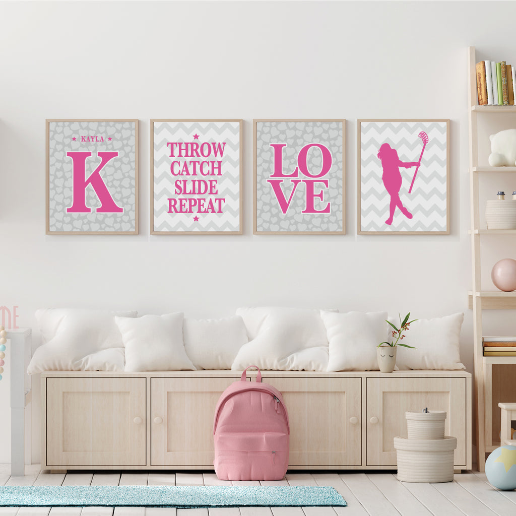 Personalized Lacrosse Girl Wall Art – Set of 4 Prints