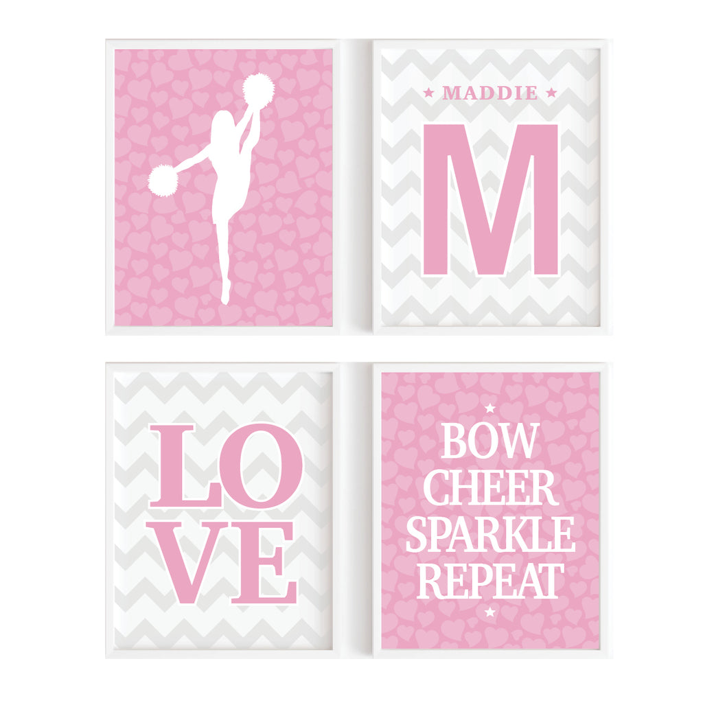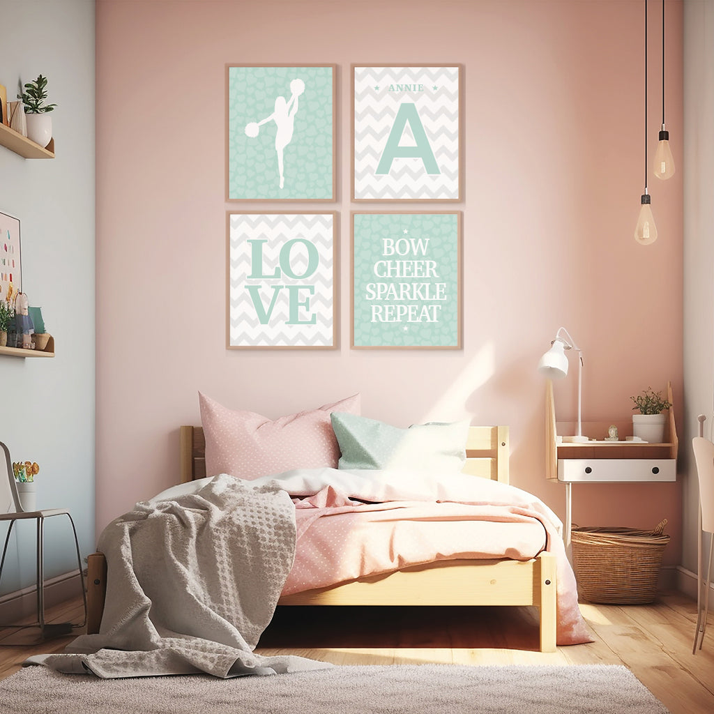 Teen Cheerleader Wall Art – Set of 4 Modern Pastel Sports Prints for Girls’ Rooms